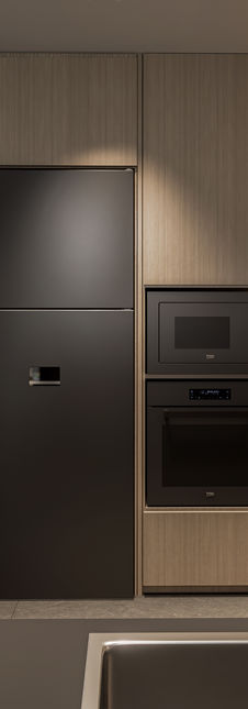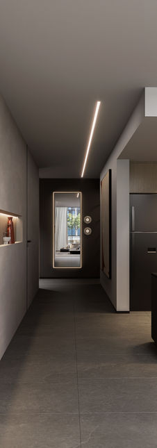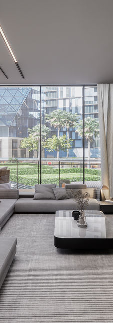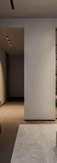 This apartment is designed to evoke a sense of calm and spaciousness, with a neutral color palette that creates a serene atmosphere throughout. The design focuses on subtlety, with each space defined by its unique materials and thoughtful layout, yet everything flows cohesively to create a harmonious whole.