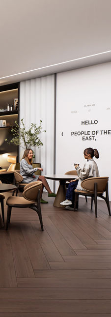 crafted to align with the development’s core values, creating a harmonious environment that feels both welcoming and authentic. The design seamlessly integrates the aesthetic vision with functionality, enhancing the connection between the building’s exterior and its interiors, while fostering a sense of belonging and comfort for all who experience it.